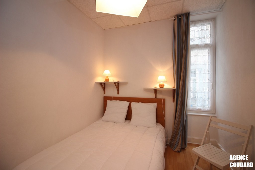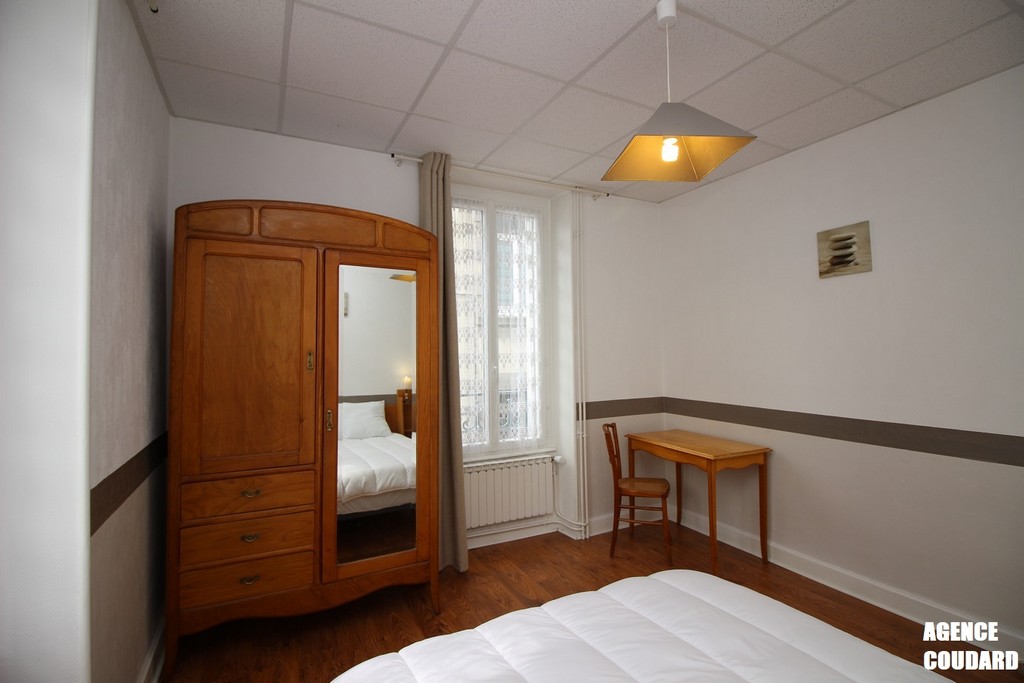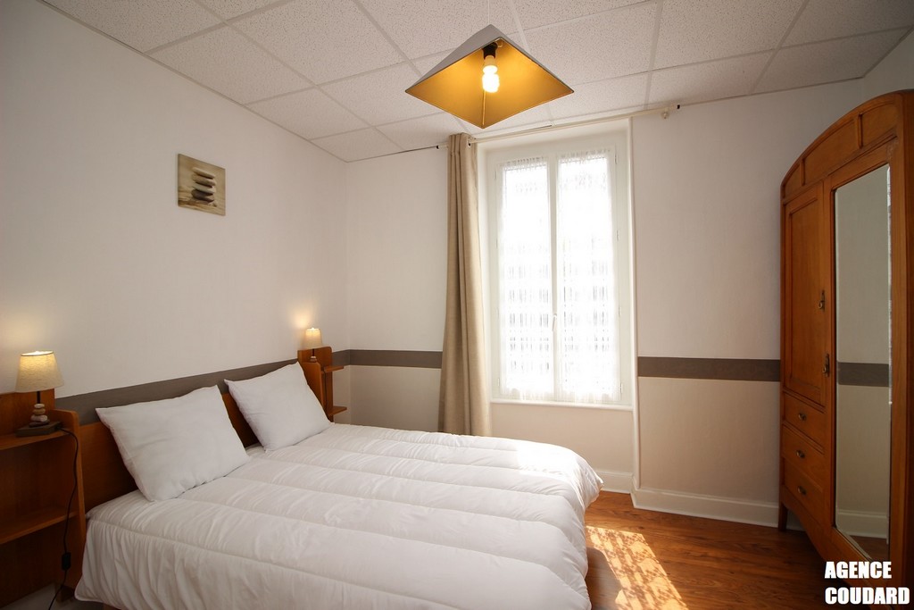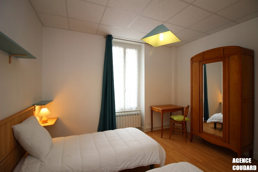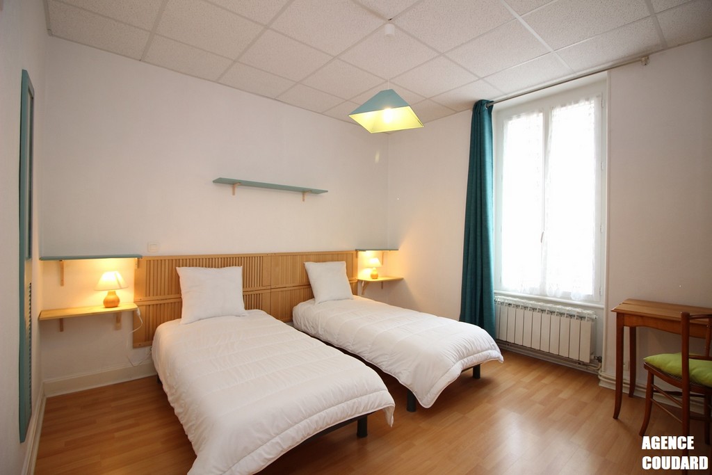 Une chambre double exposition avec lit 140, armoire et petite table bureau.
