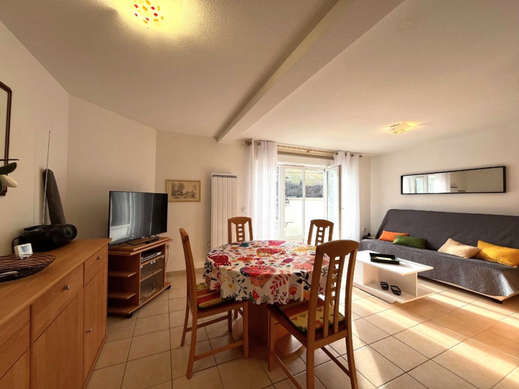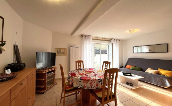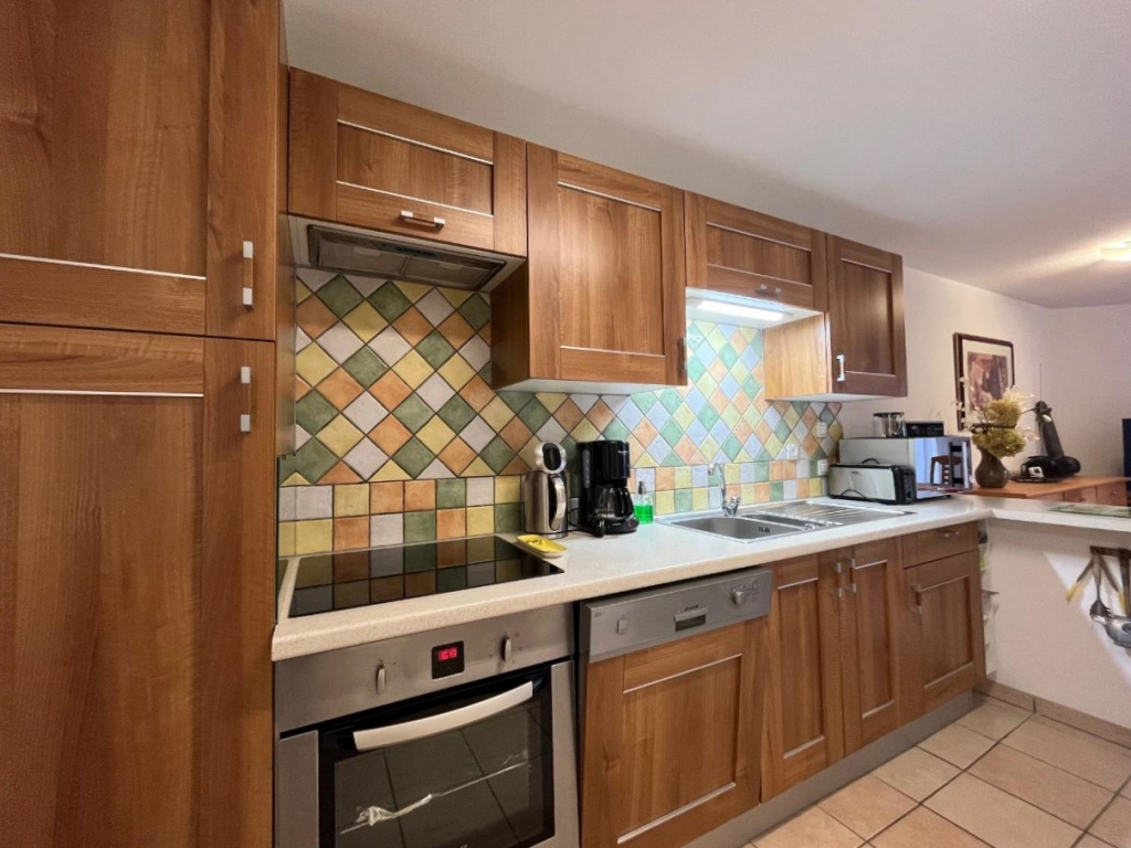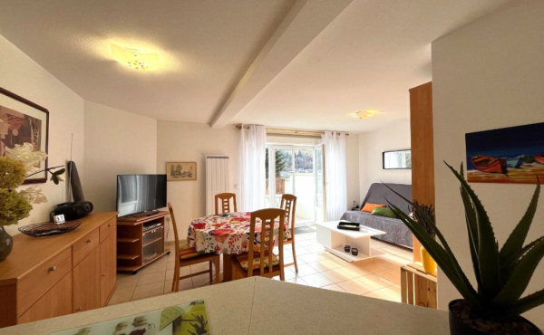 Cet appartement est composé d'une entrée, une piéce à vivre avec convertible en couchage double, une cuisine entiérement équipée avec plaque induction 3 zones, hotte, four, micro-ondes, réfrigérateur grand modéle avec congélateur, lave-vaisselle ...
