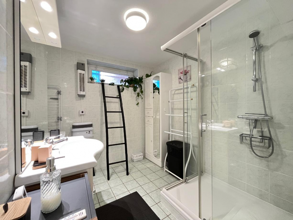 Salle d'eau (douche) avec séche-serviettes et lave-linge.