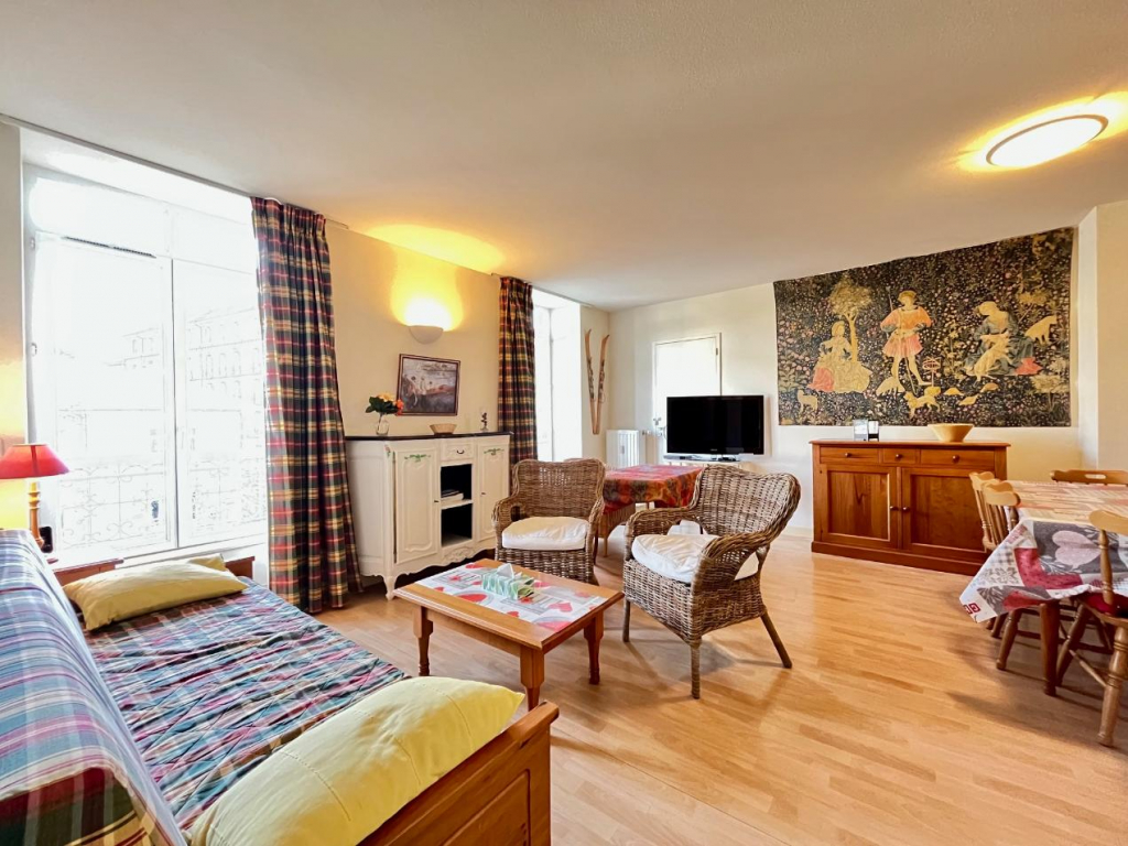 Cet appartement est composé d'une spacieuse pièce à vivre avec convertible couchage1 personne, cuisine US équipée: réfrigérateur GM avec congélateur, combiné plaque vitro céramique et four, lave-linge séchant, lave-vaisselle, micro-ondes ...