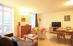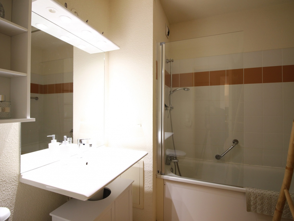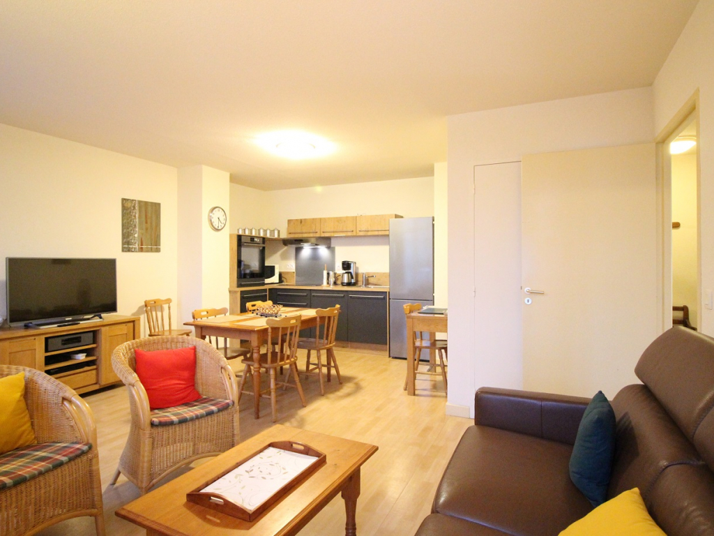Cet appartement est composé d'une spacieuse pièce à vivre avec convertible couchage 1 personne, cuisine US totalement équipée avec plaque induction, four, micro-ondes, réfrigérateur/congélateur GM, lave-linge, lave-vaisselle.