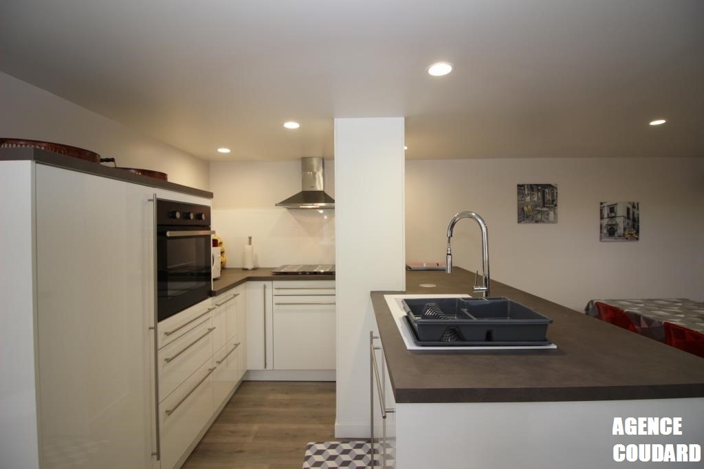 cuisine US totalement équipée avec plaque induction 4 feux, réfrigérateur, four, micro-ondes, hotte, lave-vaisselle...,