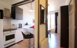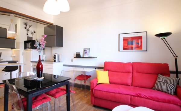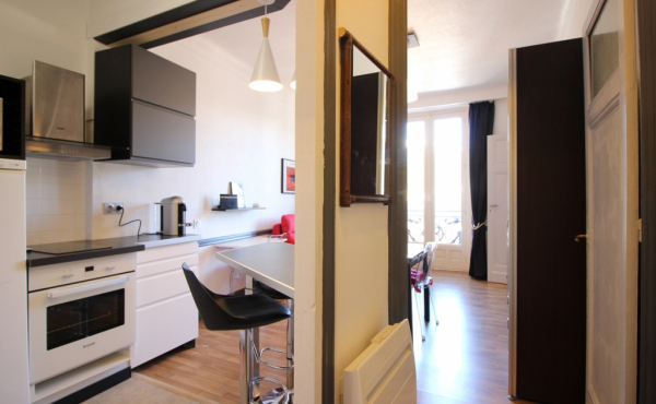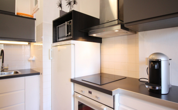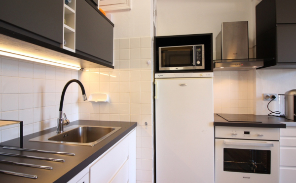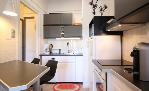 Il se compose d'une lumineuse piéce à vivre bénéficiant d'une porte fenêtre, une cuisine US équipée avec plaque de cuisson induction 2 zones, hotte, four, micro-ondes, réfrigérateur grand modèle avec petit congélateur, lave-vaisselle ....
