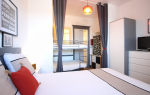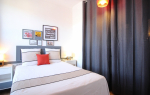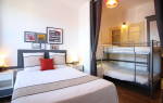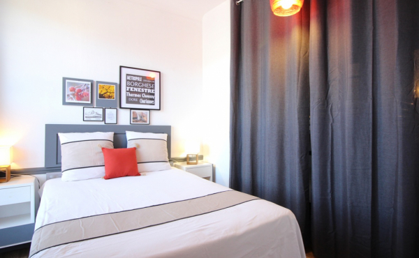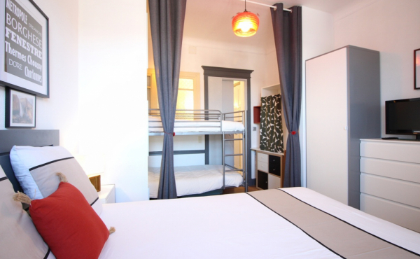 Une chambre lit140 et lits superposés 90x190, rangements et télévision, bénéficiant également d'une porte fenêtre,
