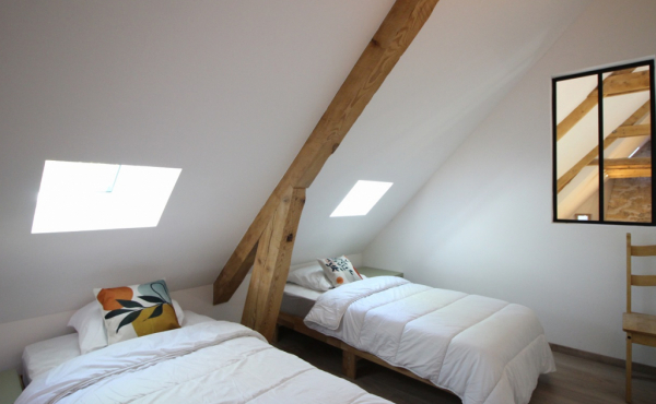 A l'étage : deux chambres chacune équipée de 2 lits simples en 90x190.