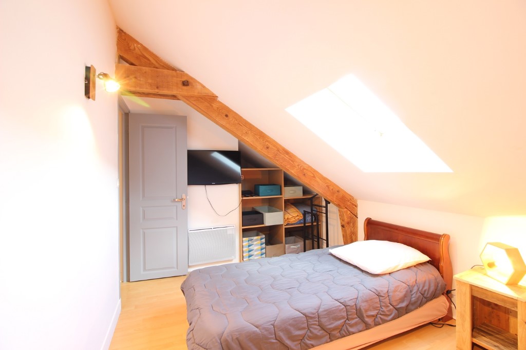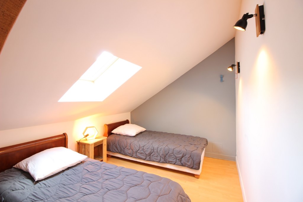 Au second niveau du duplex, deux petites chambres, une acceuillant un lit deux personnes (140) et l'autre accueillant deux lits une personnes (80).