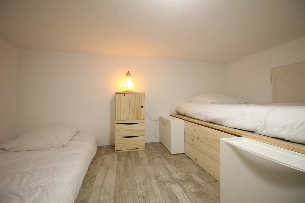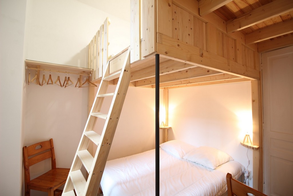 une chambre lit 140 bénéficiant d'un espace en mezzanine aménagé avec deux couchages matelas une place,