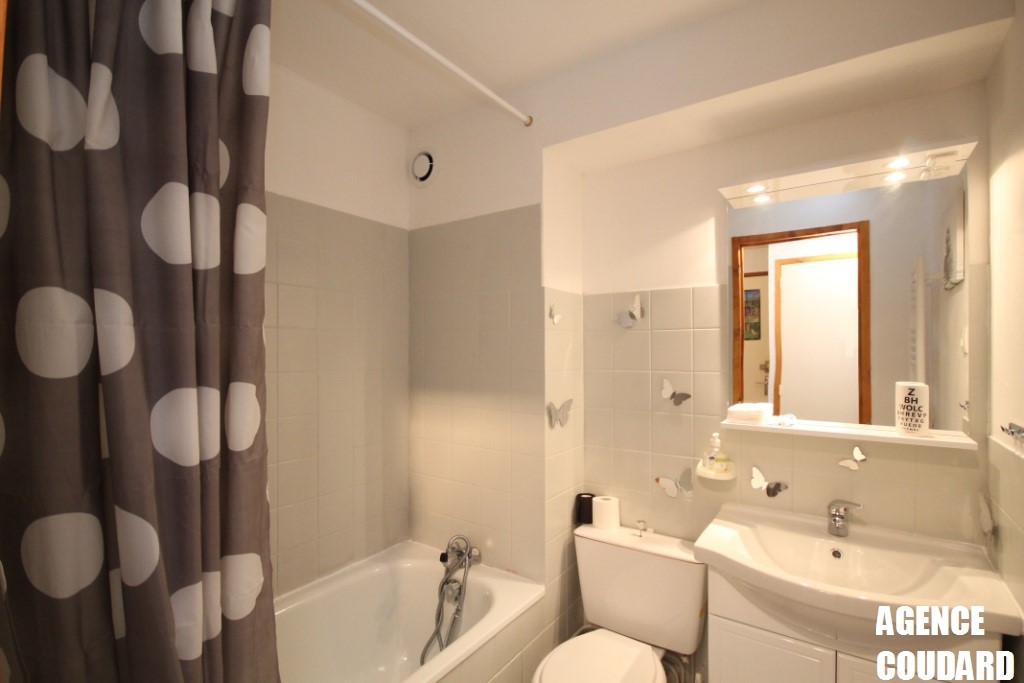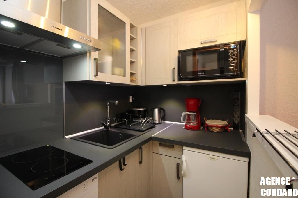 Il se compose d'une entrée, séjour lumineux ouvrant sur balcon avec un canapé clic-clac 2 places, kitchenette indépendante équipée (four, lave vaisselle, micro onde...), une chambre avec 1 lit 2 places en 140, salle de bains avec wc. Exposition Sud/Est.