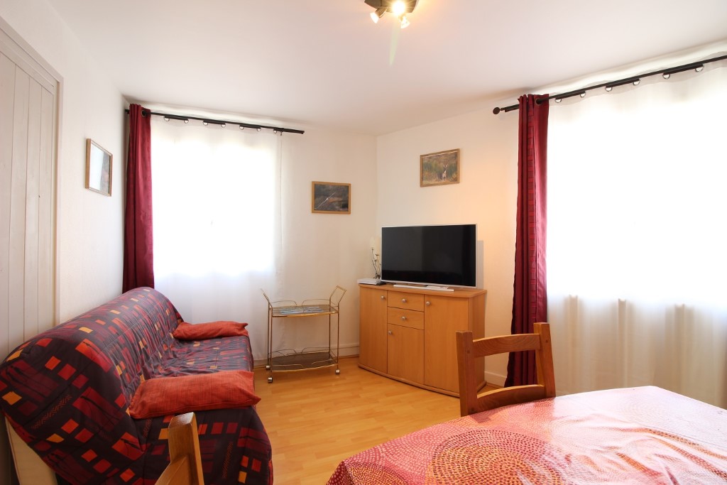 Il se compose d'une entrée avec rangements, un séjour jouissant d'une très belle vue sur le Puy Gros, cette pièce à vivre dispose d'un canapé convertible en lit deux personnes en 160, une cuisine indépendante équipée, depuis laquelle on accède au rez-de-jardin, une grande chambre (lit 140) et enfin, une salle d'eau avec douche et WC.