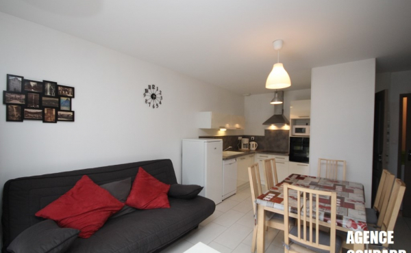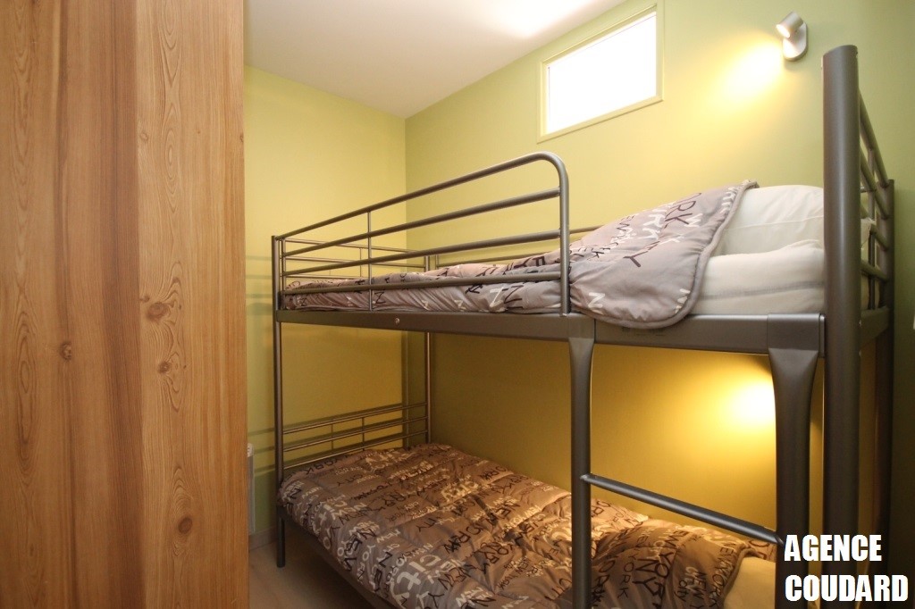 Il se compose d'une pièce de vie avec cuisine US entièrement équipée, 1 canapé convertible en lit 2 places, une chambre avec un lit 2 personnes, une chambre cabine avec 2 lits superposés, une belle salle d'eau (douche) et un wc indépendant.