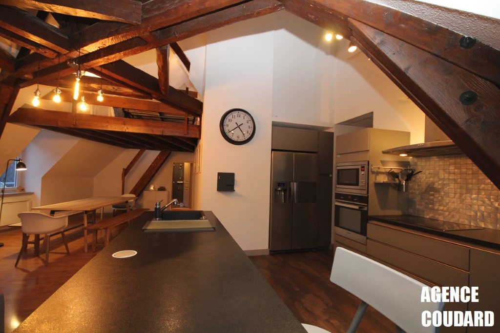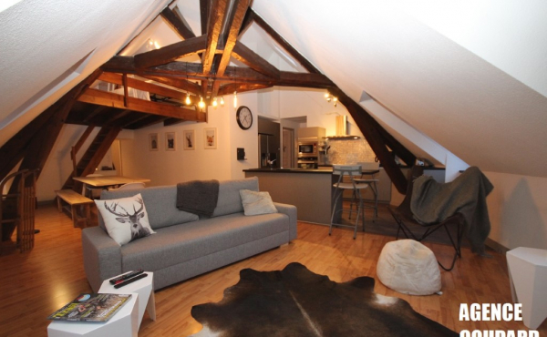 Il se compose d'une entrée, une spacieuse pièce à vivre combinant séjour, cuisine US entièrement équipée et salle à manger, deux chambres disposant chacune d'un lit 2 personnes en 140, une mezzanine surplombant la pièce à vivre avec un lit 2 personnes en 140.