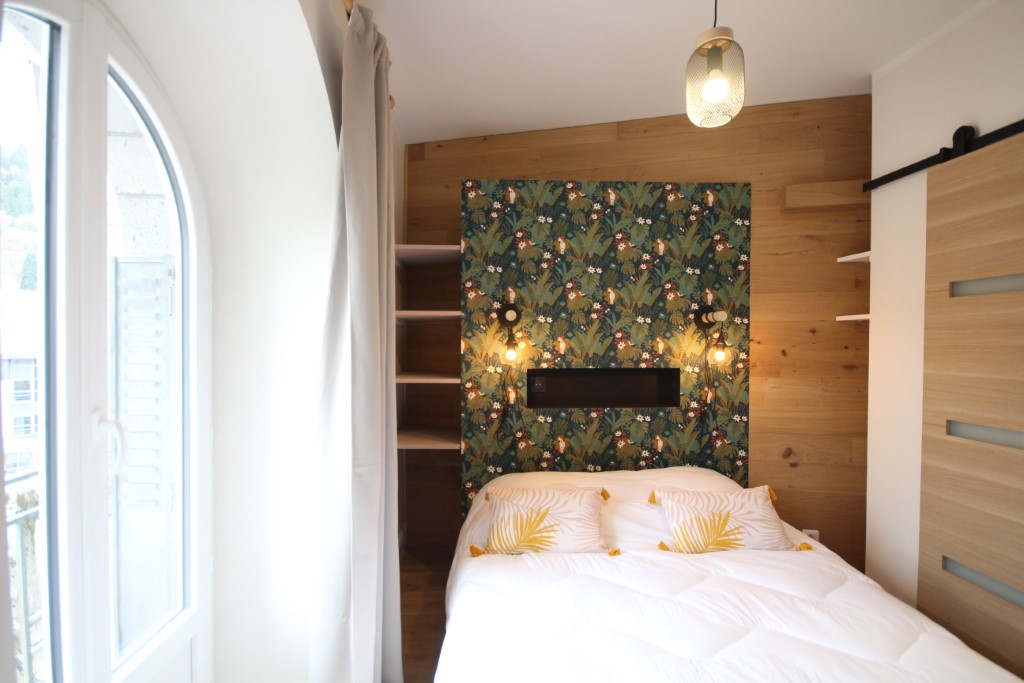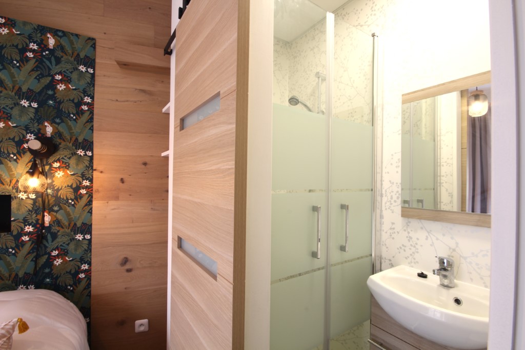 Mais encore, l'appartement dispose d'une chambre avec lit double (en 140) et salle d'eau avec douche et WC.