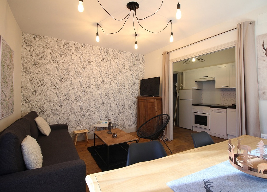 Mais encore, une belle pièce à vivre combinant séjour / salle à manger, le tout exposé SUD et bénéficiant d'une très belle vue sur nos montagnes locales. Cette pièce dispose d'un canapé lit 140x190.