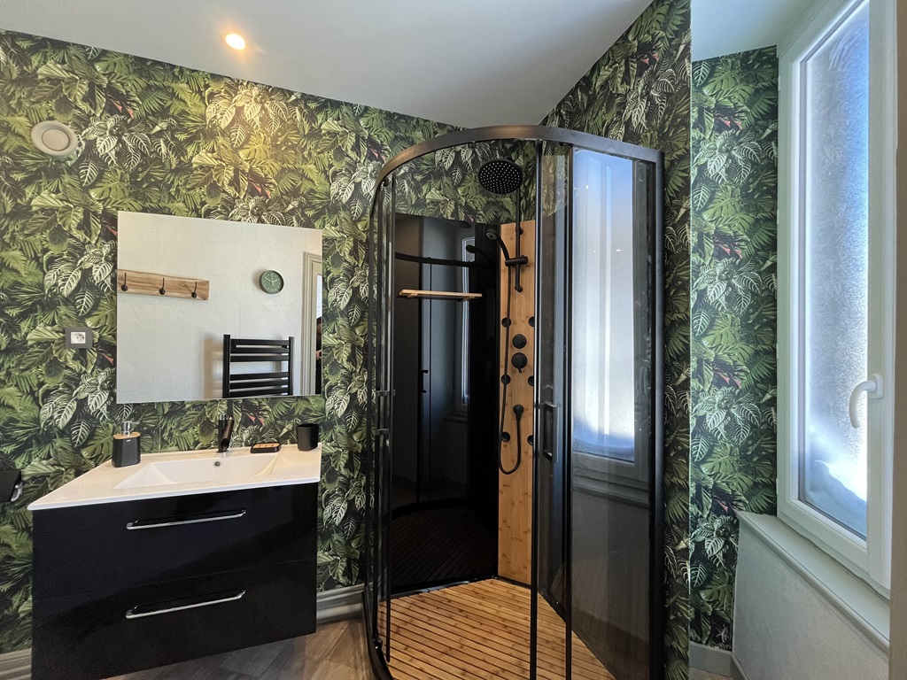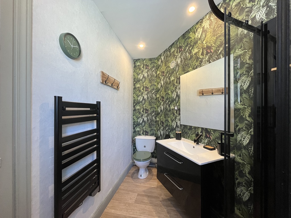 Enfin, une salle d'eau principale avec douche, un WC indépendant et un petit espace buanderie avec lave-linge complètent ce beau produit.