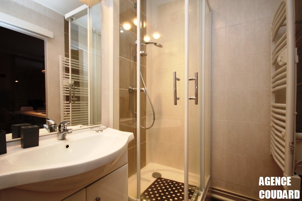 Salle d'eau avec sèche serviette et wc.