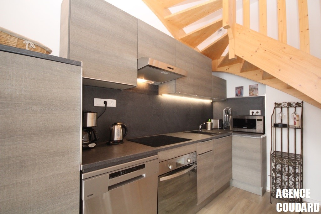 Il se compose d'une belle pièce à vivre ensoleillée avec cuisine US équipée toute équipée (grand réfrigérateur, four, lave vaisselle etc ...), le salon dispose d'un canapé convertible deux personnes.