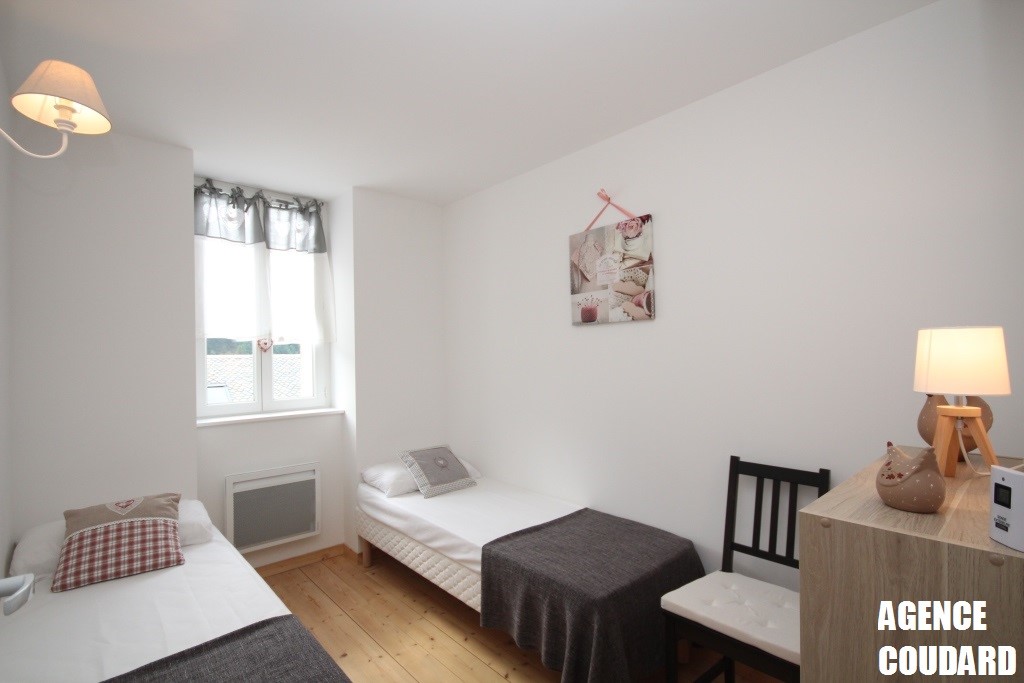 A l'étage, deux chambres, la première comprenant un lit deux personnes en 140, la seconde deux lits une personne en 70*190, une salle d'eau avec douche et lave linge, un WC indépendant et un grand dressing.