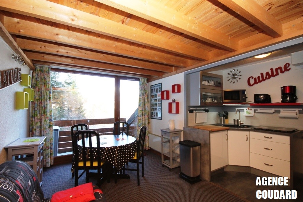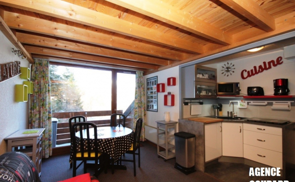T2 en duplex composé d'une entrée, séjour avec une banquette BZ 2 personnes, ouvrant sur balcon, cuisine US équipée, salle de bains avec toilette.