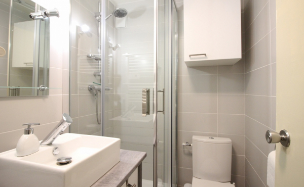 Salle d'eau (douche) / wc et séche-serviettes et petit lave-linge.