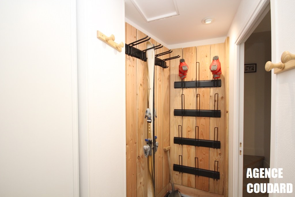 Il se compose d'une vaste entrée avec un local à skis, une agréable pièce à vivre combinant séjour, salle à manger et cuisine US équipée (grand réfrigérateur, four, lave vaisselle etc ...), cette pièce dispose d'un canapé convertible en lit deux personnes.