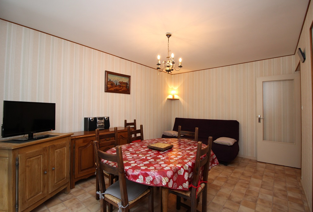 Hall d'entrée, séjour équipé d'un convertible clic-clac couchage 2 personnes et ouvrant sur balcon,