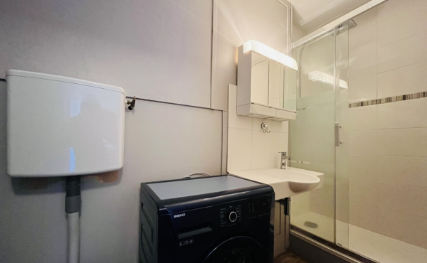 Et enfin, une salle d'eau avec douche, lave-linge et WC.