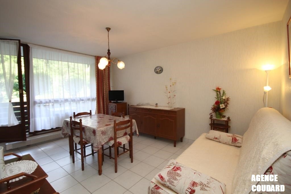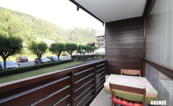 Une pièce à vivre avec une banquette clic-clac 2 personnes ouvrant sur balcon,