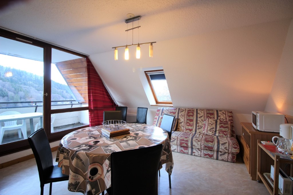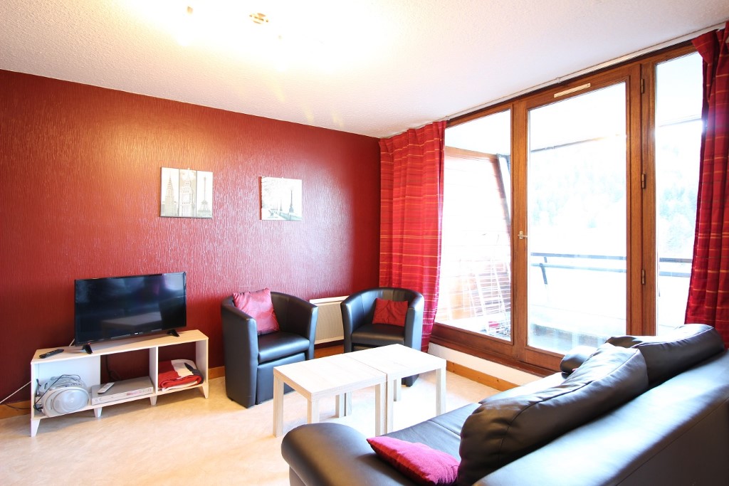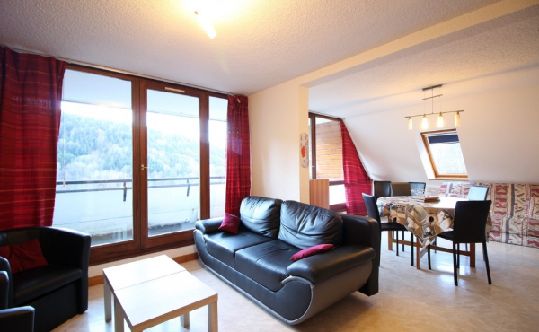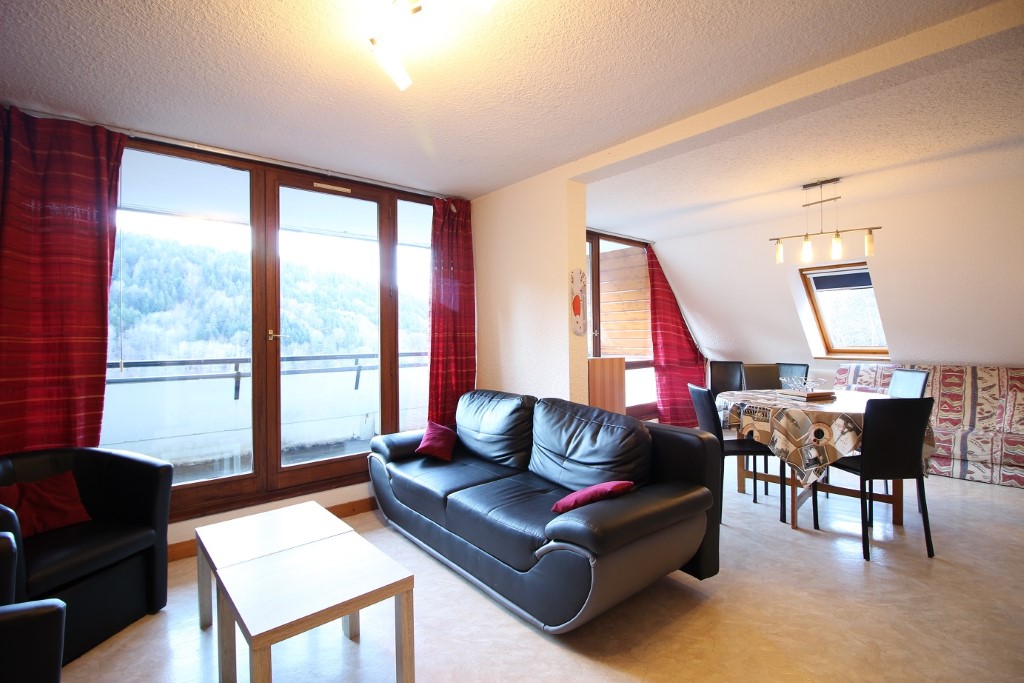 Un grand séjour avec grande baie vitrée ouvrant sur beau balcon, 1 banquette 2 personnes,
