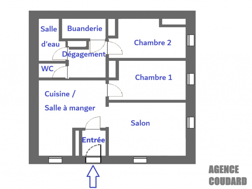 Il se compose d'une entrée avec rangements, d'une cuisine / salle à manger, un agréable salon, deux chambres, une salle d'eau avec douche, un WC indépendant et une buanderie.
