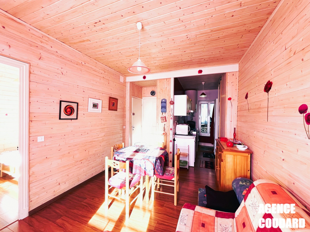 Il se compose d'une entrée avec rangements, une agréable pièce à vivre exposée OUEST et offrant une belle vue sur nos montagnes locales.