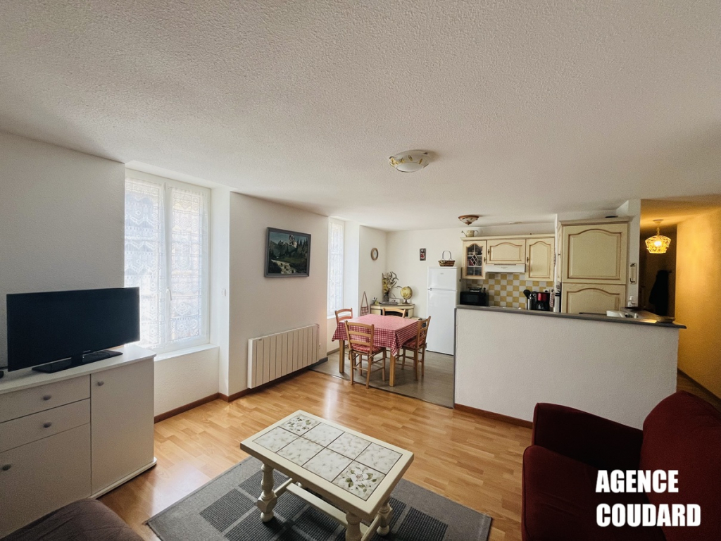 Idéalement situé à 200 m du coeur du MONT-DORE et de toutes ses commodités, bel appartement de type T3, d'une surface de 53 m² Carrez, situé au 1er étage (sans ascenseur).