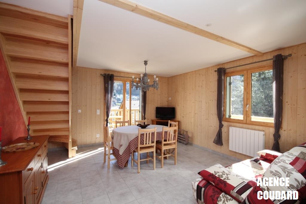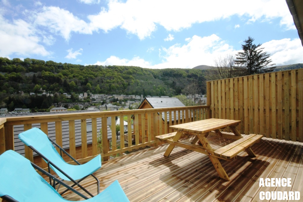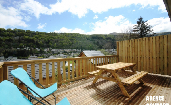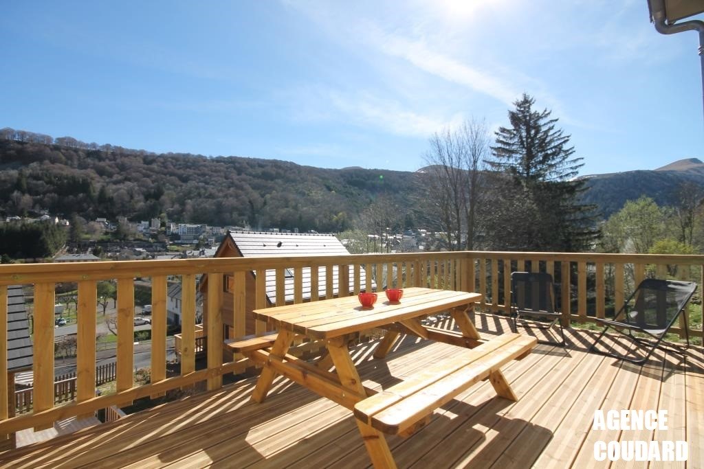 A 500 m de l'hyper centre du MONT DORE et de toutes commodités, splendide chalet bâti en 2013, d'une surface de 130 m² dont 106 m² (écart dû aux mansardes), sur une petite parcelle de 387 m².