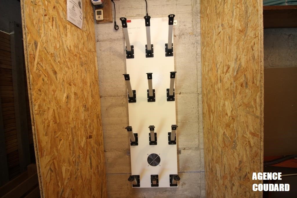 Grand local à skis sous le chalet d'environ 14m² avec chauffe chaussures, et local à vélos pour l'été.