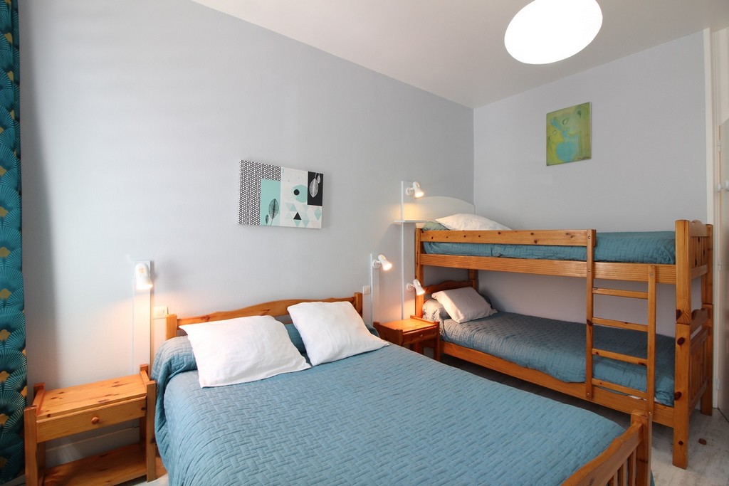 Une chambre lit 140 et lits superposés avec rangements et meuble bureau