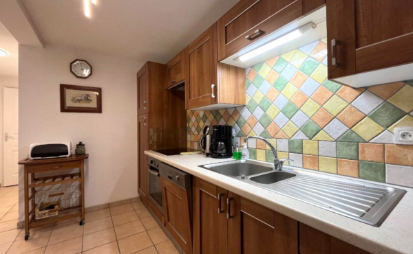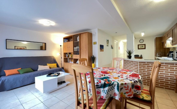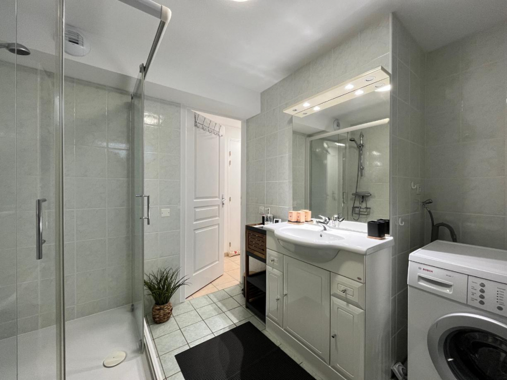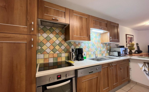 Cet appartement est composé d'une entrée, une piéce à vivre avec convertible en couchage double, une cuisine entiérement équipée avec plaque induction 3 zones, hotte, four, micro-ondes, réfrigérateur grand modéle avec congélateur, lave-vaisselle ...