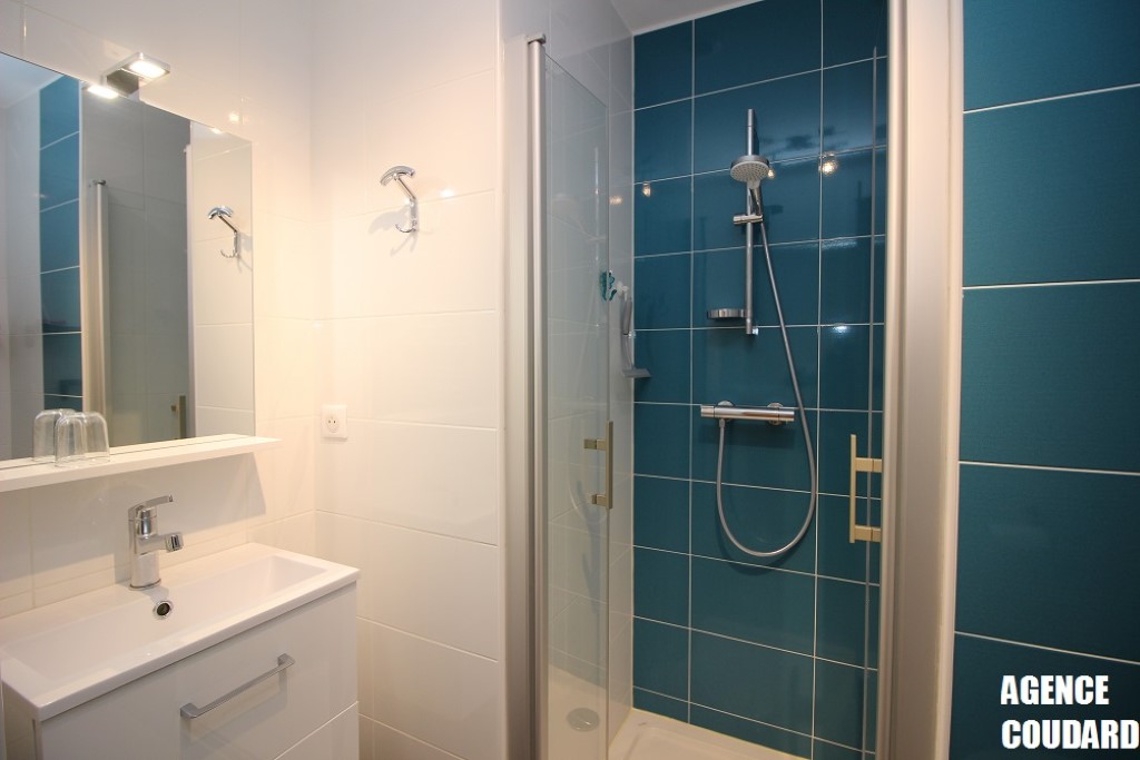 Salle d'eau (douche)/wc équipée d'un sèche-serviettes. Lave linge et sèche-linge.