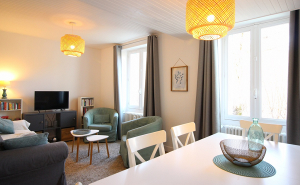 LA BOURBOULE à 700m du centre et de toutes commodités dans petite résidence, bel appartement T3 de 68m² situé au rez-de-jardin accessible par un escalier extérieur et bénéficiant d'un accès direct aux espaces verts aménagés de la résidence.
