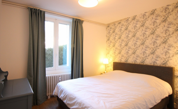 Une chambre lit 160x190 avec rangements et vue sur jardin,
