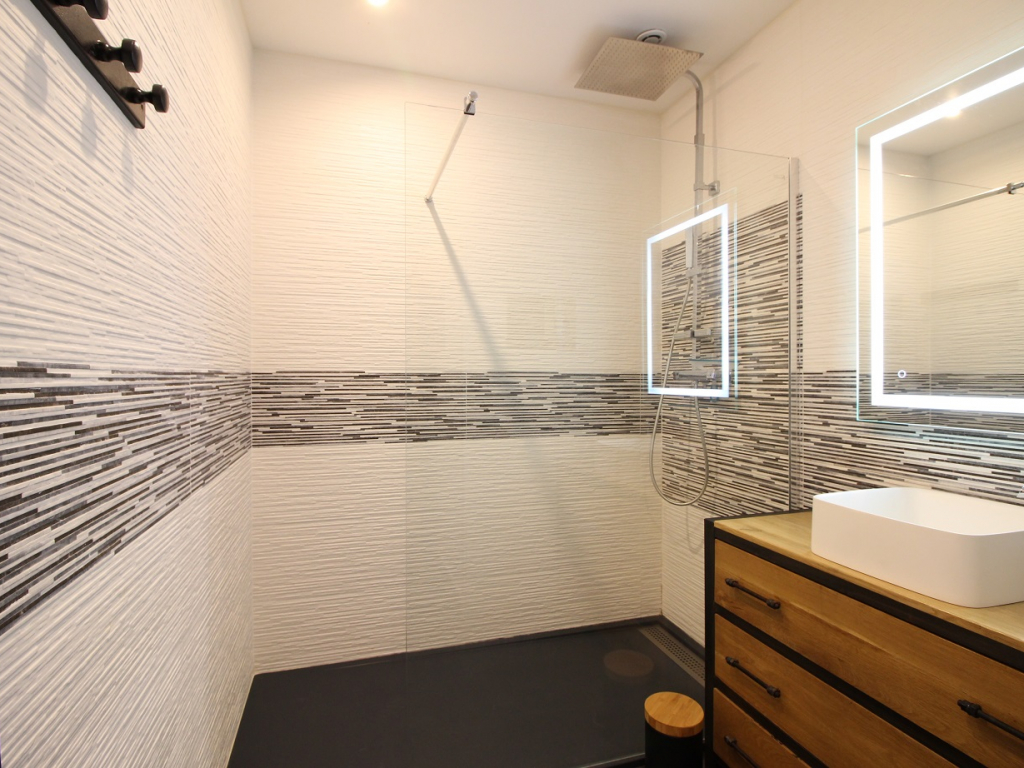 Salle d'eau (douche) avec sèche-serviettes,