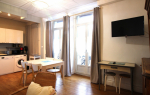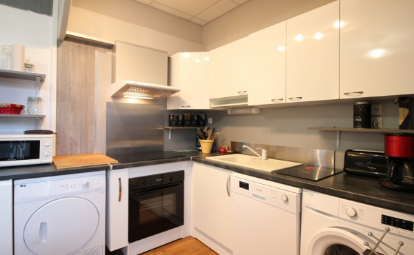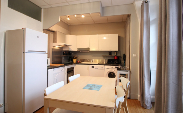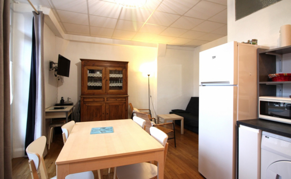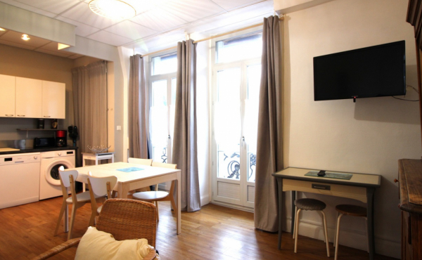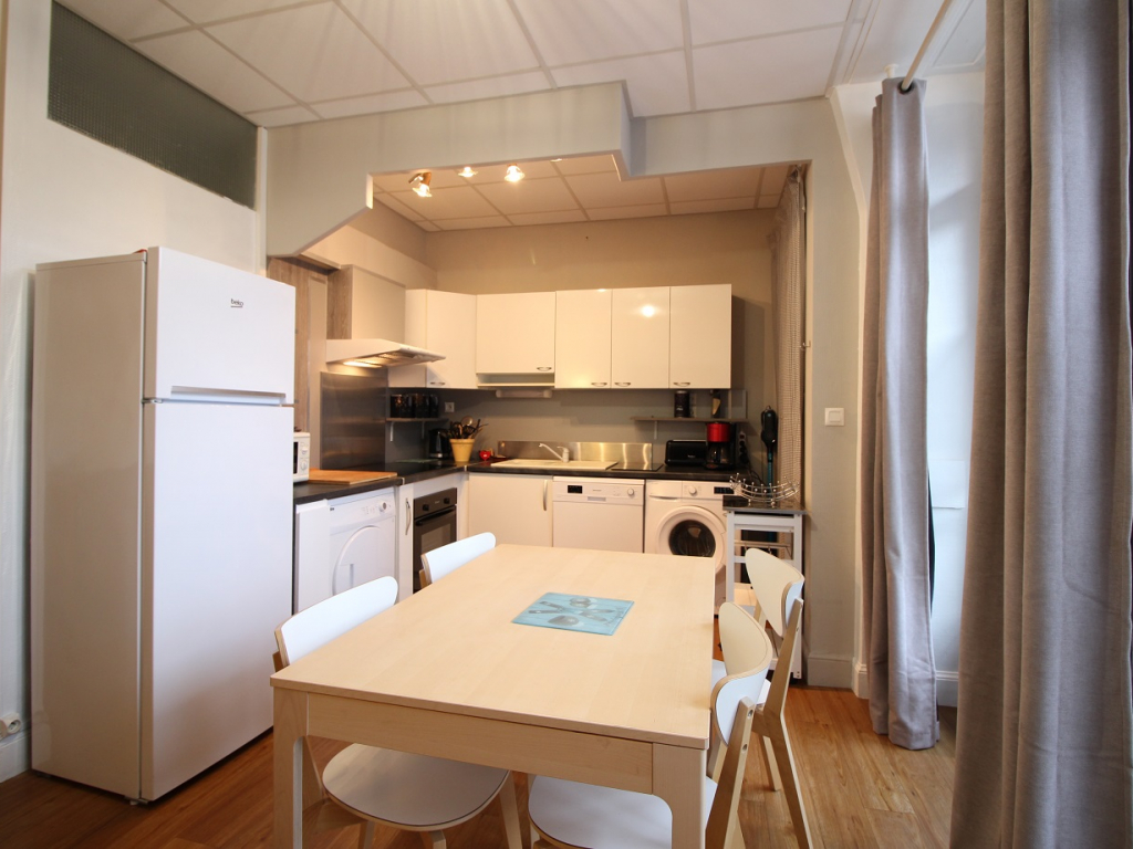 Cet appartement est composé d'une agréable pièce à vivre avec convertible clic-clac 1 personne, cuisine US équipée avec plaque induction 4 zones, hotte, four, réfrigérateur grand modèle + congélateur, micro-ondes, lave-vaisselle, lave-linge, sèche-linge ...