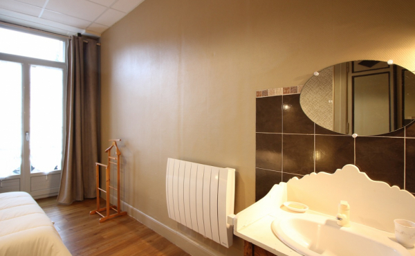 Une chambre lit 140 avec lavabo et rangements,