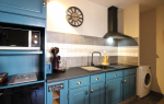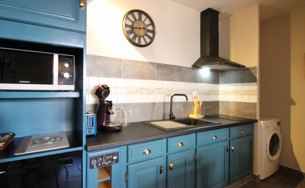 Cuisine US équipée avec plaque 2 zones induction, hotte, réfrigérateur grand modèle avec congélateur, petit lave-vaisselle, combiné four/micro-ondes, lave-linge ...
