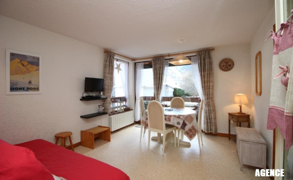 Il se compose d'une entrée, séjour lumineux ouvrant sur balcon avec un canapé clic-clac 2 places, kitchenette indépendante équipée (four, lave vaisselle, micro onde...), une chambre avec 1 lit 2 places en 140, salle de bains avec wc. Exposition Sud/Est.