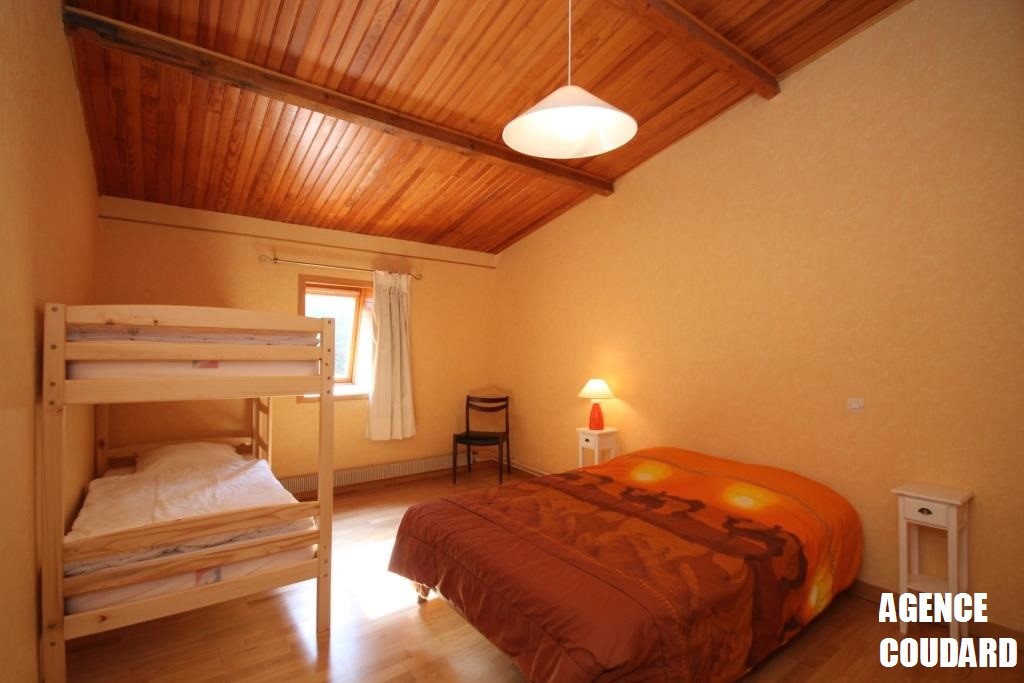 A l'étage une chambre avec un lit double 140 et lits superposés, une chambre avec un lit 160,
