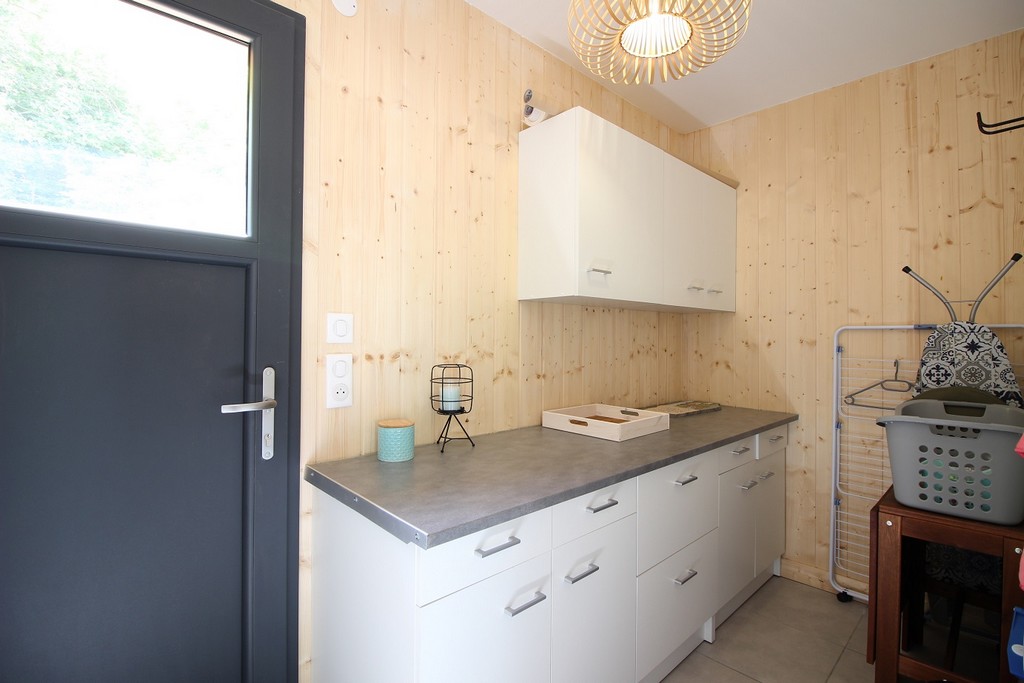 Une arrière cuisine bénéficiant de nombreux rangements.