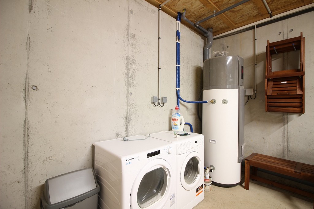 Un local à skis, espace lave-linge et sèche-linge, et un congélateur.