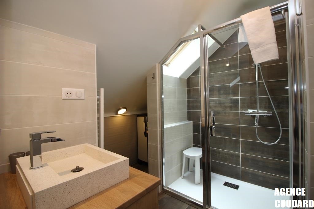A l'étage : une seconde chambre avec lit 160, rangements et salle d'eau privative (douche) et wc.