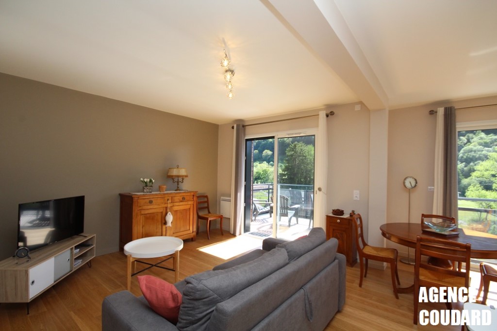 L'appartement se compose d'une entrée, une belle pièce à vivre combinant séjour (avec canapé convertible 2 couchages) et cuisine US / salle à manger, le tout exposé plein OUEST et ouvrant sur un agréable balcon, disposant d'une splendide vue sur le Sancy et le Capucin.