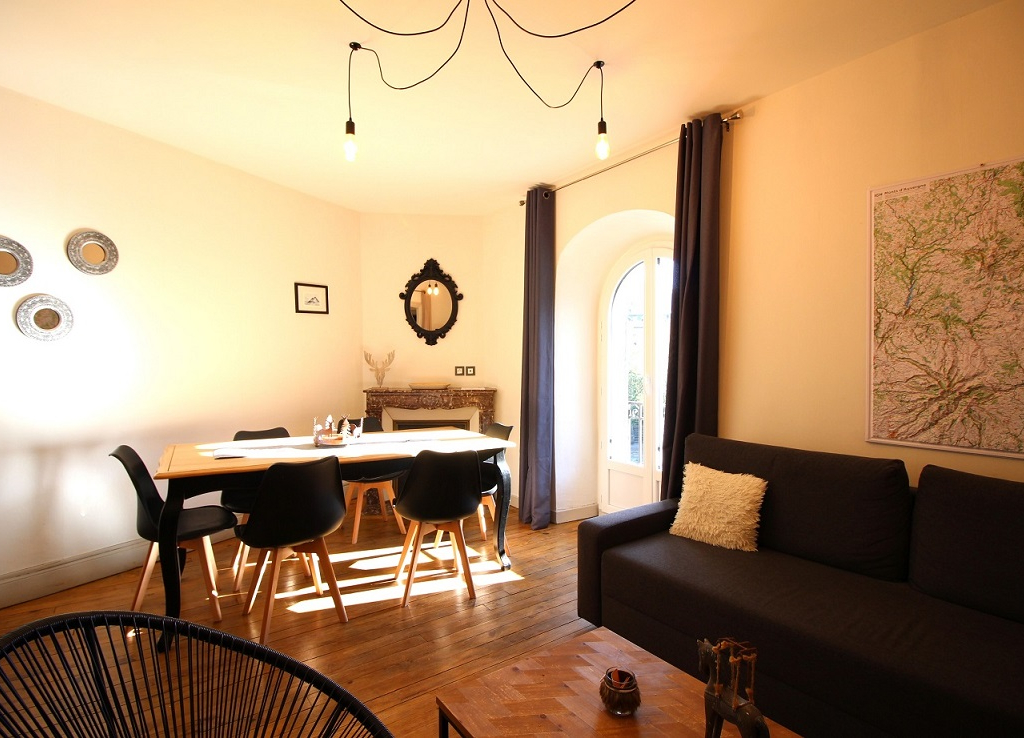 Mais encore, une belle pièce à vivre combinant séjour / salle à manger, le tout exposé SUD et bénéficiant d'une très belle vue sur nos montagnes locales. Cette pièce dispose d'un canapé lit 140x190.