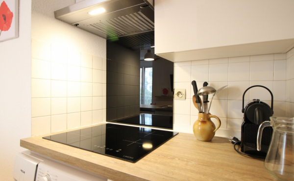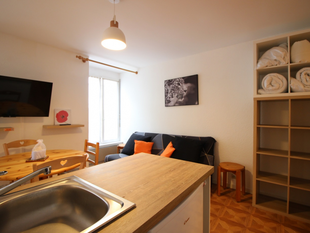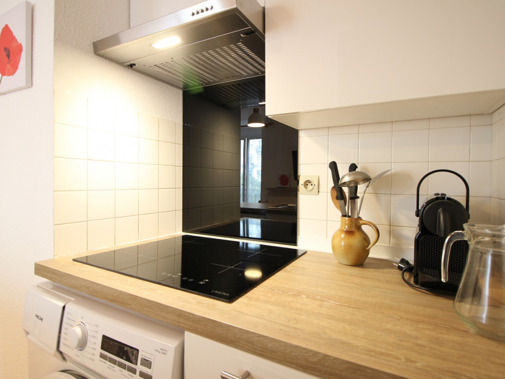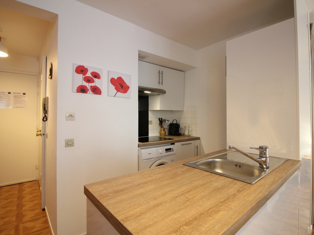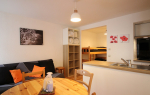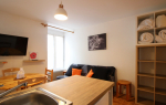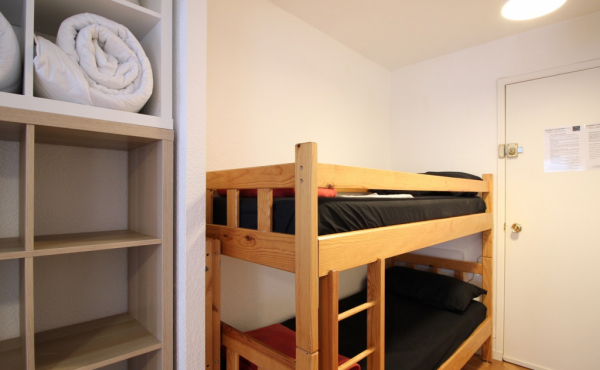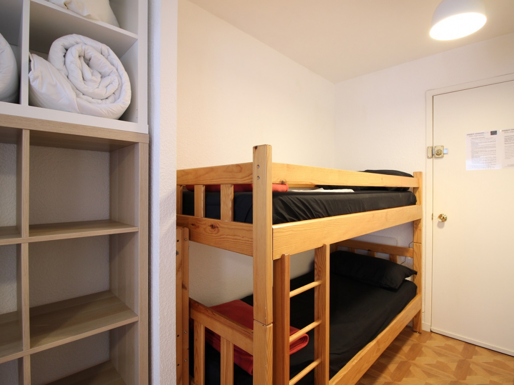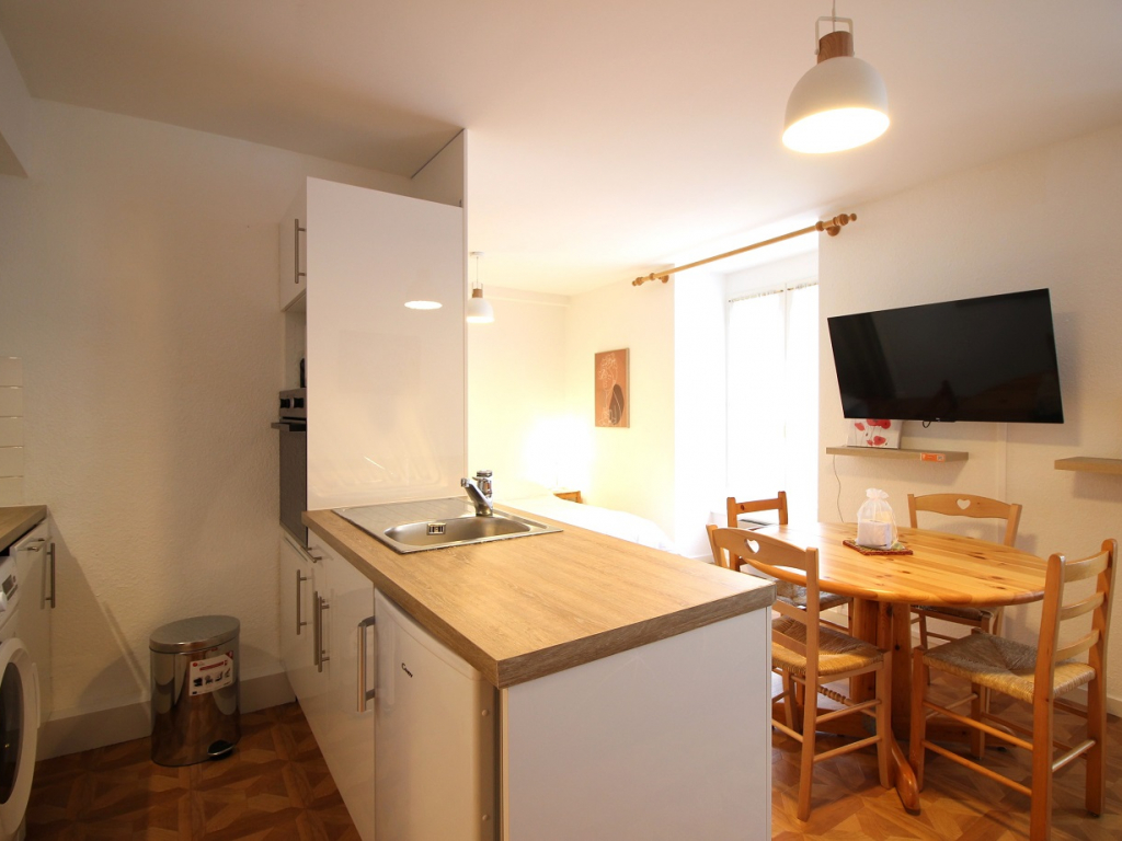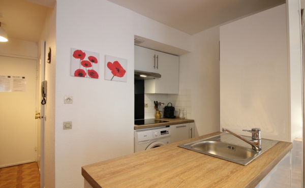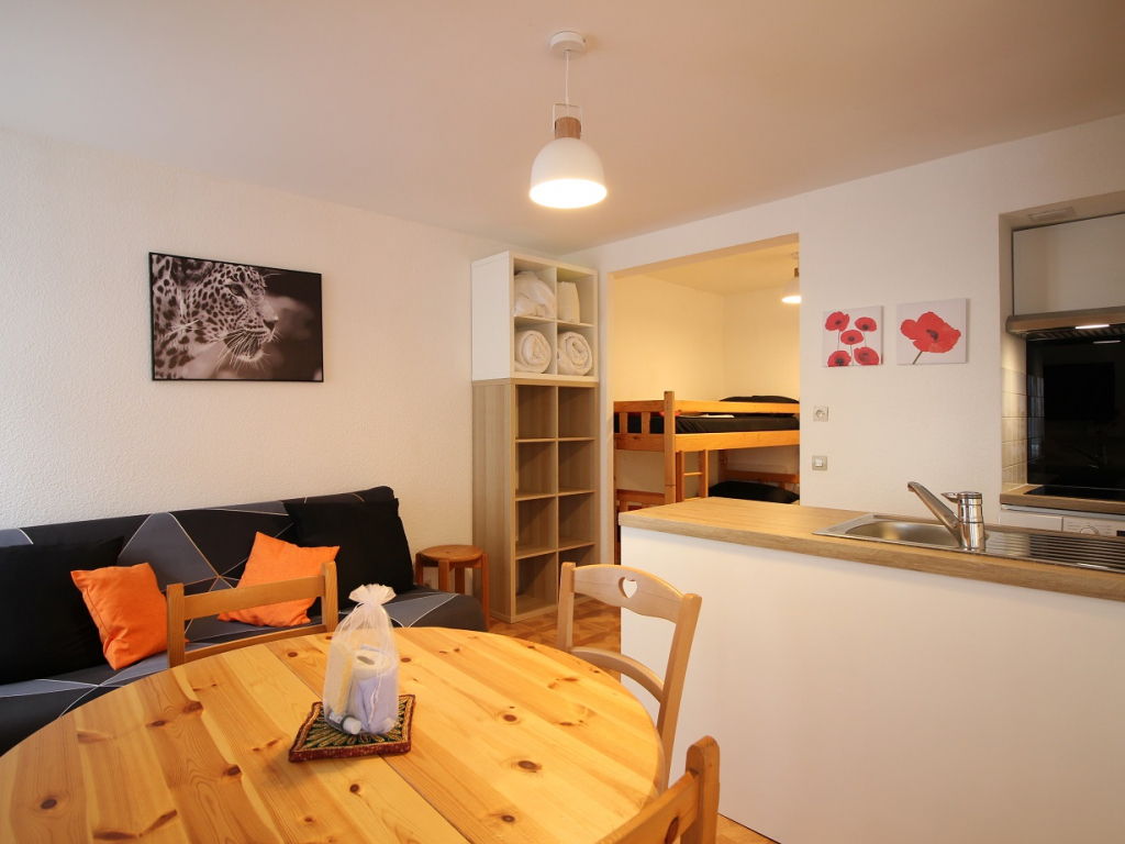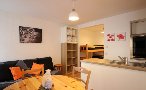 Il se compose d'une entrée équipée de lit superposé, une lumineuse pièce à vivre éclairée par deux fenêtres, une cuisine US équipée d'une plaque vitrocéramique 4 zones, hotte, four, micro-ondes, réfrigérateur Top avec petit congélateur, lave-vaisselle, lave linge ...